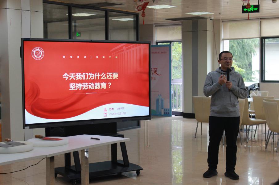 活动伊始,化学院党委副书记范煜老师以“今天我们为什么还要坚持劳动教育?”为题,带来一堂生动的思政微课。他从校史中的劳动传统、劳动教育实践以及劳动与创新的关系三个维度出发,结合自己在科大求学时参与校园建设的经历,指出“回望校史,劳动是科大人的精神底色”。范煜老师进一步阐释了劳动在锤炼品格、赋能成长中的重要意义,强调在注重理论学习和科研训练的科大环境中,劳动实践具有不可替代的育人价值,引导同学们理解“用双手创造”的深层内涵。