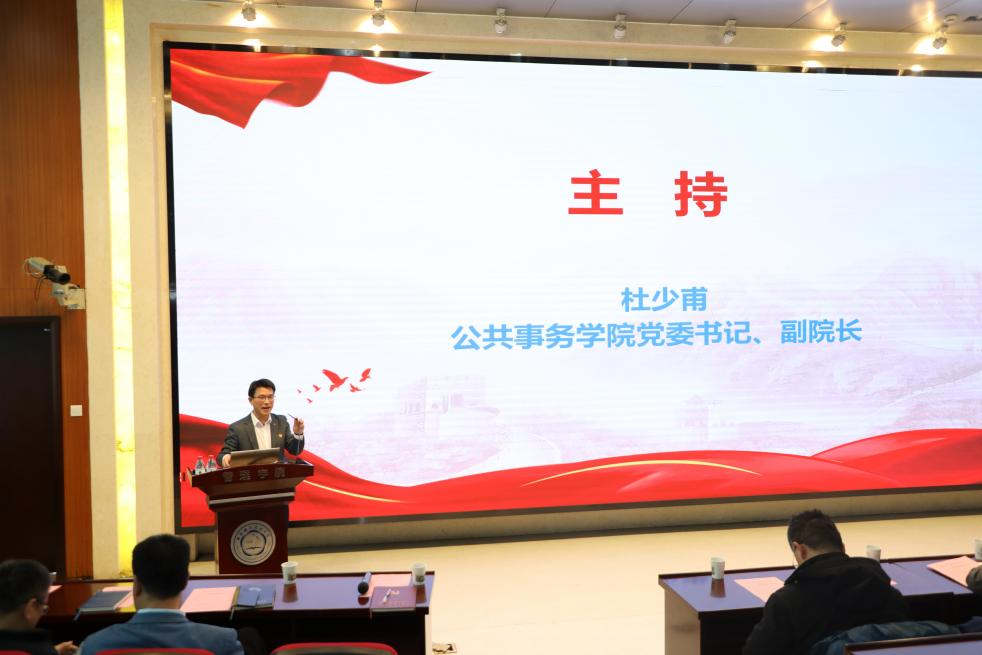 1月20日下午,校党委常委、副校长、校学习贯彻党的二十届四中全会精神宣讲团成员邓建松在管理科研楼二楼学术报告厅作党的二十届四中全会精神学习宣讲,公共事务学院、人文与社会科学学院、校医院、饮食服务集团全体党员、师生代表参加报告会。本次宣讲会由我院承办,院党委书记、校文科建设办公室主任杜少甫主持宣讲会。