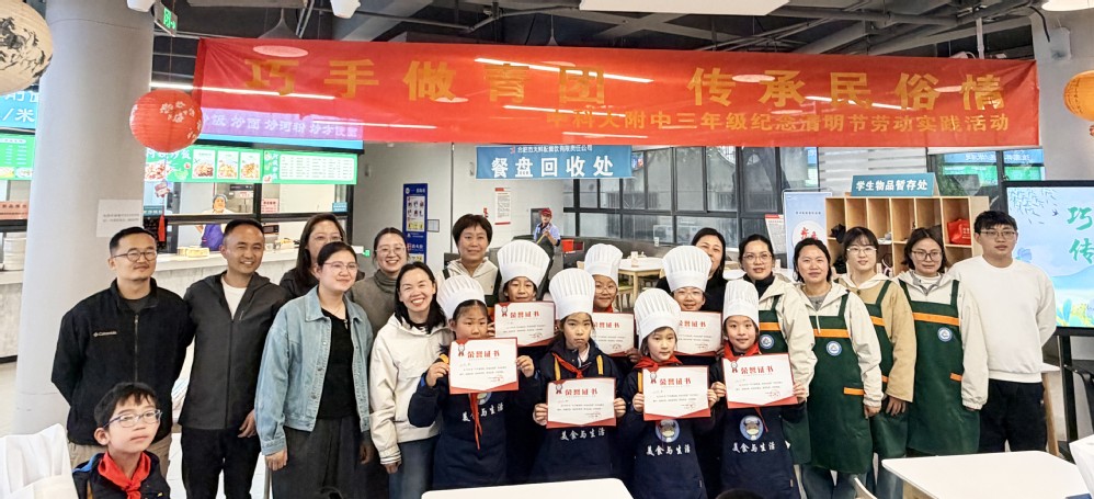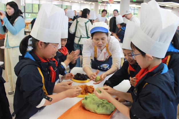 4月8日下午,“巧手做青团 传承民俗情”劳动实践活动在南区学生食堂火热开展。中科大附中三年级的四十余名师生欢聚一堂,在亲手制作美食的过程中,在动手制作中感受传统节日魅力,体验劳动带来的快乐与成就感。